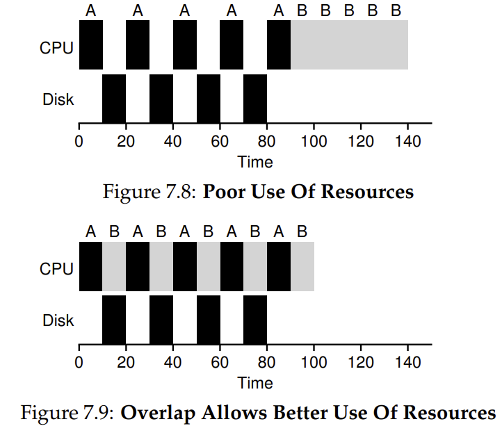 Scheduler should execute a different job on the CPU while the current job is blocked. Once the I/O is complete should the CPU