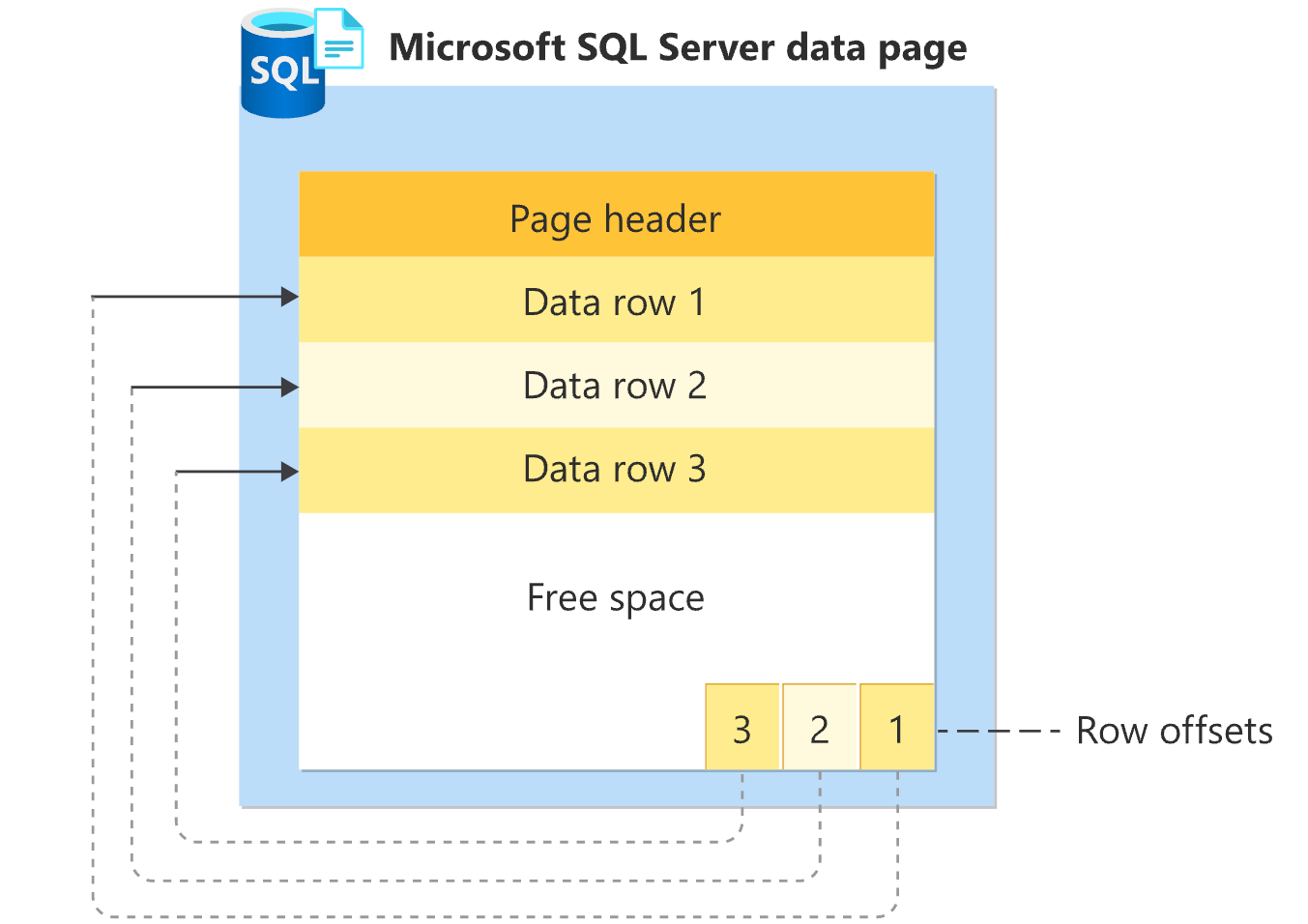 Database rows are stored in fixed-size blocks or pages which closely resembles how disks are arranged. Each page can be identified by an address, just like a pointer in C but on the disk instead of in memory.